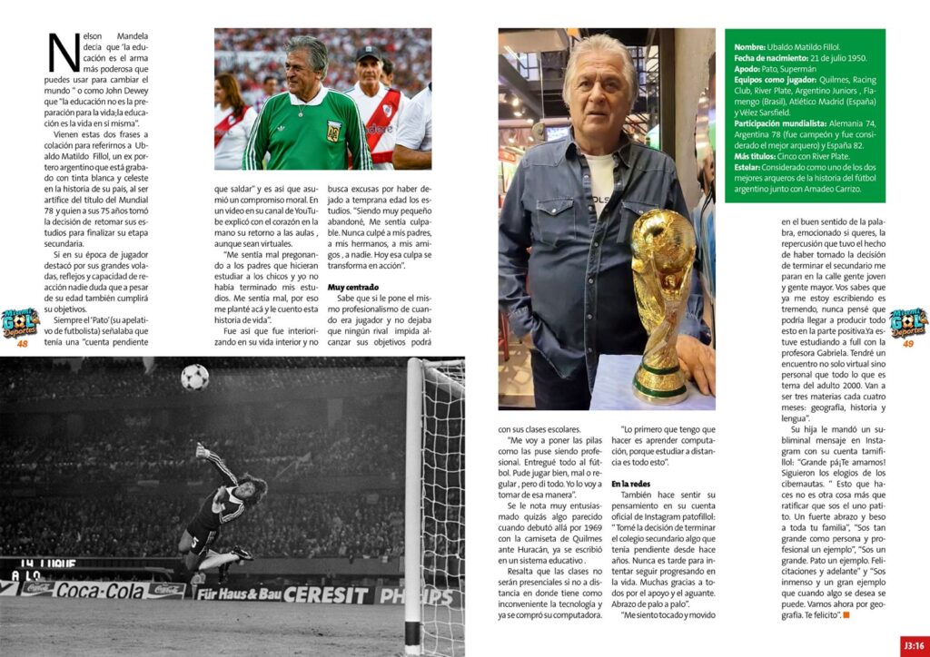 Vienen estas dos frases a colación para referirnos a  Ubaldo Matildo  Fillol, un ex portero argentino que está grabado con tinta blanca y celeste en la historia de su país, al ser artífice del título del Mundial 78  y quien a sus 75 años tomó la decisión de  retomar sus estudios para finalizar su etapa secundaria.