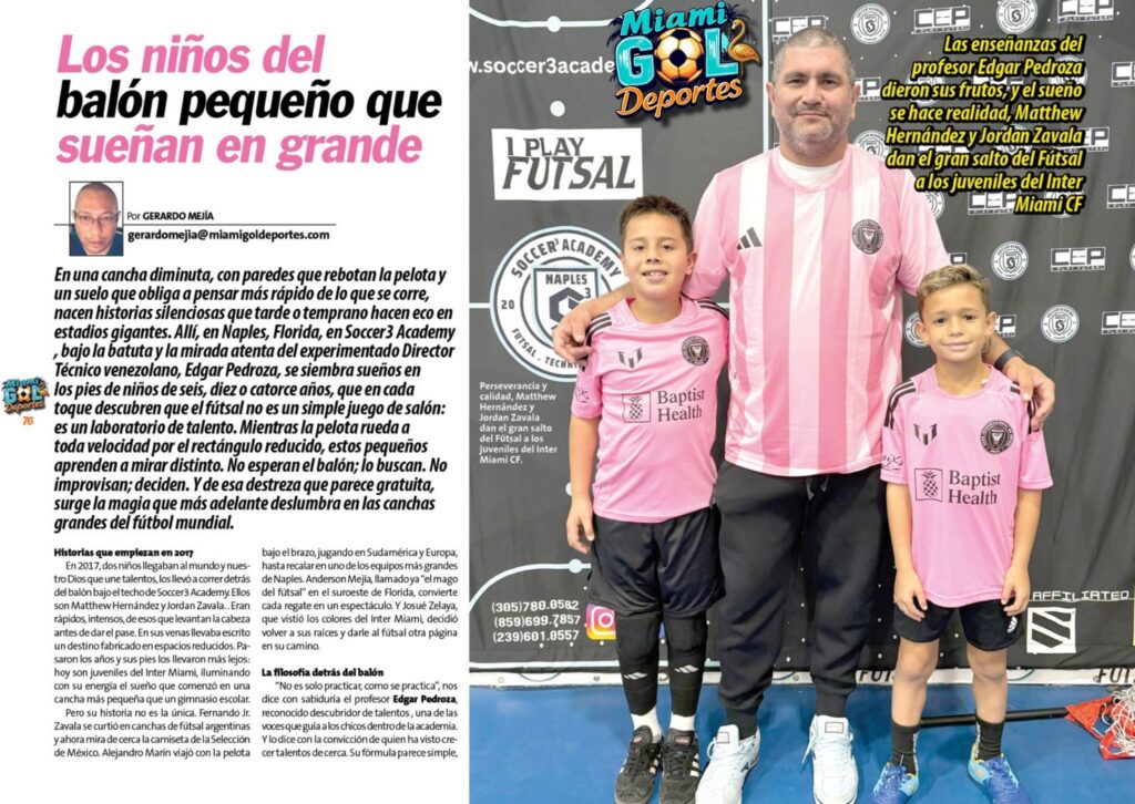 (MGD).- En una cancha diminuta, con paredes que rebotan la pelota y un suelo que obliga a pensar más rápido de lo que se corre, nacen historias silenciosas que tarde o temprano hacen eco en estadios gigantes. Allí, en Naples, Florida, en Soccer3 Academy , bajo la batuta y la mirada atenta del experimentado Director Técnico venezolano, Edgar Pedroza, se siembra sueños en los pies de niños de seis, diez o catorce años,