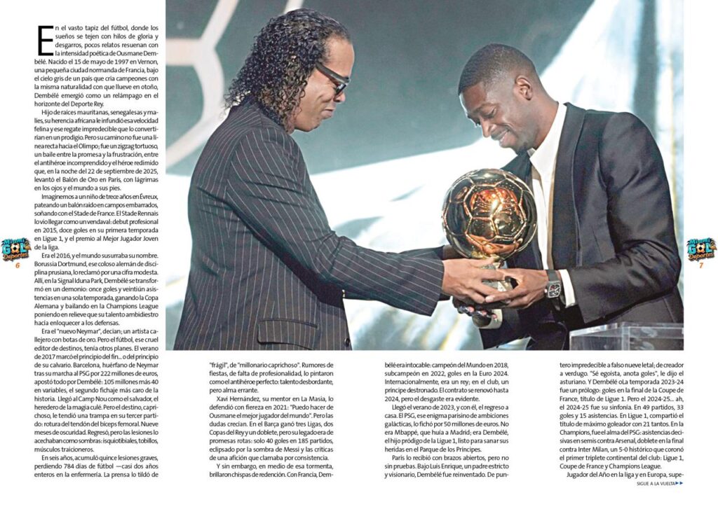 Ousmane Dembélé no es solo un ganador de Balón de Oro; es la prueba viviente de que las caídas más profundas forjan los vuelos más altos. En un fútbol de máquinas perfectas, él nos recuerda que los humanos, con sus grietas y resurrecciones, escriben las epopeyas más emotivas. Y mientras el balón rueda, su historia sigue inspirando: de antihéroe a leyenda, de Vernon a la eternidad.